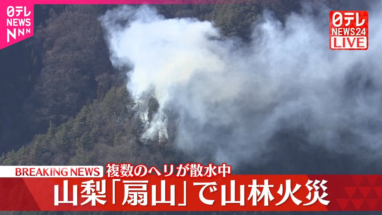 【速報】山梨「扇山」で山林火災 複数のヘリが散水中 ニュース X Facebook Hatena Bookmark Pocket LINE Copy 2026.01.08 8日午前、山梨県の大月市と上野原市にまたがる「扇山」で山林火災が発生しました。 (2026年1月8日放送) この動画の記事を …