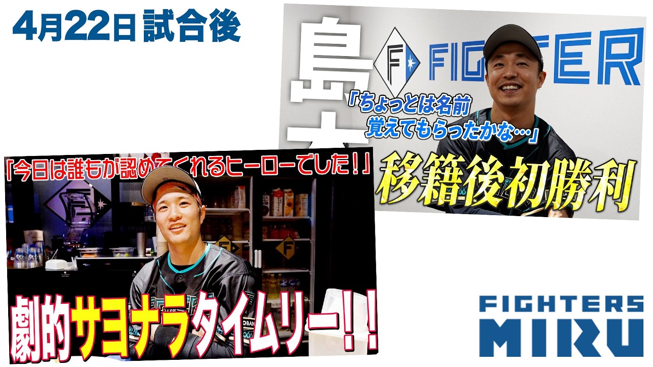 【ファイターズMIRU】4/22試合後の奈良間&島本インタビュー ニュース X Facebook Hatena Bookmark Pocket LINE Copy 2026.04.23 ファイターズMIRUでは試合後の選手インタビューを配信中! その様子を少しだけお届けします。 ファイターズMIRUはこちら …