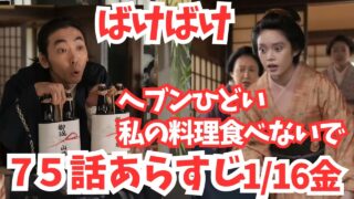 【ばけばけ】75話ネタバレあらすじ解説1/16金!ヘブン山橋西洋料理店で食べてた!私のごはん食べないで怒りのトキ!薬舗!朝ドラ15週16週へ