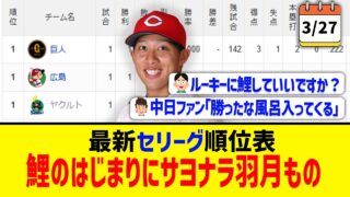【3月27日】最新セリーグ順位表 ~鯉のはじまりにサヨナラ羽月(はつき)もの~